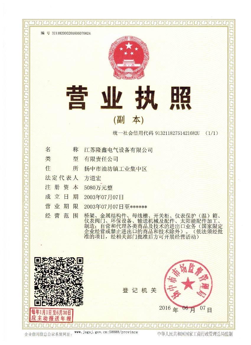 江蘇隆鑫電氣設(shè)備有限公司(原揚中市隆鑫電器設(shè)備有限公司)位于風景秀麗的江南古城 ---- 鎮(zhèn)江東部揚子江畔,水陸交通便利。 本公司是中石化網(wǎng)絡(luò)成員企業(yè),是揚中橋架企業(yè),工業(yè)管道閥門、儀表管配件、母線槽、匯線橋架、玻璃鋼制品的專業(yè)生產(chǎn)廠家。 我公司一貫以經(jīng)營以管理為保證、以科技進步為動力,使產(chǎn)品的市場占有率不斷提高,公司正持續(xù)、穩(wěn)步、健康地向前發(fā)展,秉循“創(chuàng)造完美、服務(wù)用戶、奉獻社會”的經(jīng)營觀念,本公司生產(chǎn)的儀表管件及閥門系列產(chǎn)品、母線槽、電纜橋架幾乎覆蓋全國31個省、市、自治區(qū)的化工、冶金、交通、輕...